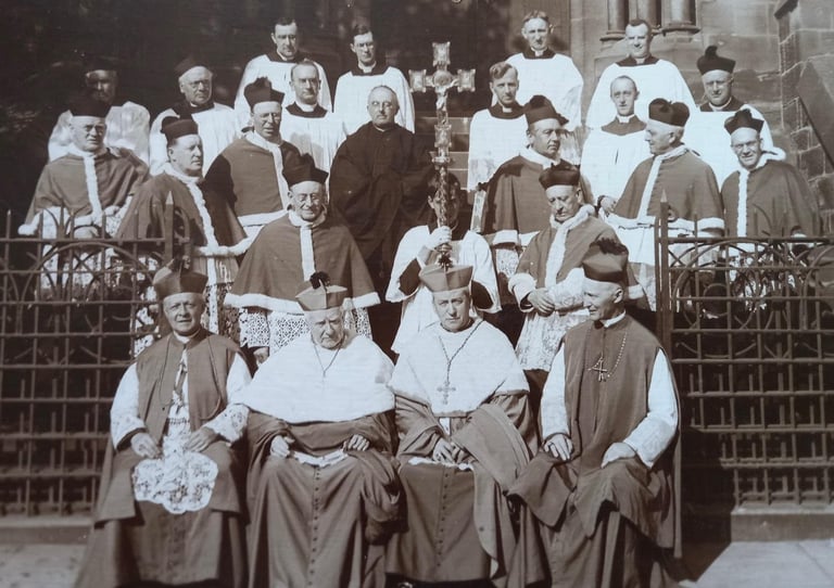 Consecration, when a church is given over to God, can only take place when it is completely free of any debt. This took place on 24th September 1925. The serving and auxiliary Bishops of Middlesbrough performed the ceremony in front of a great assembly of priests and clergy from the diocese and beyond. A report on the ceremony was included in the Whitby Gazette on 25th September 1925:
